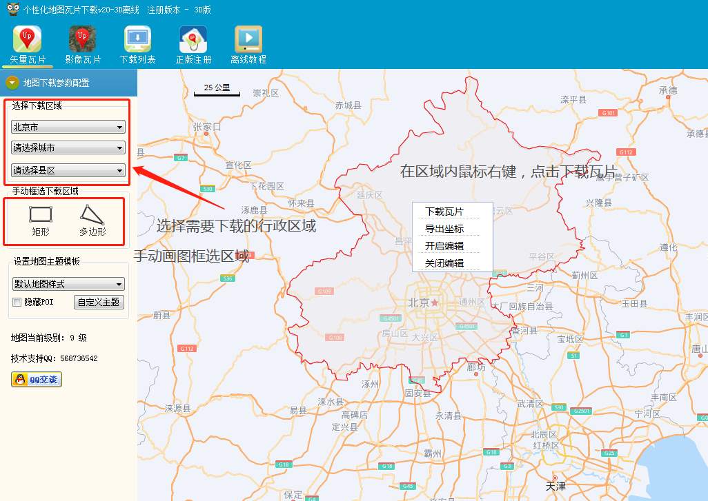 1)、进入软件首页,选择行政区域下载瓦片(如下图)
